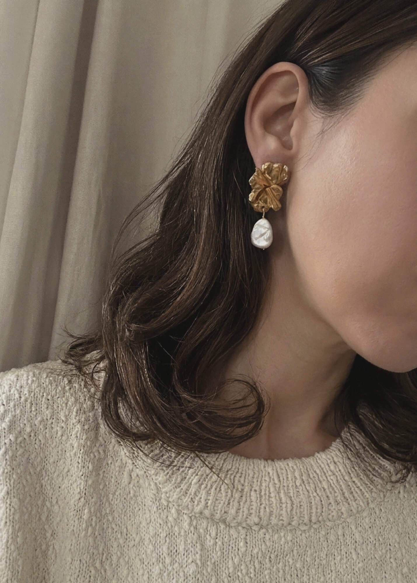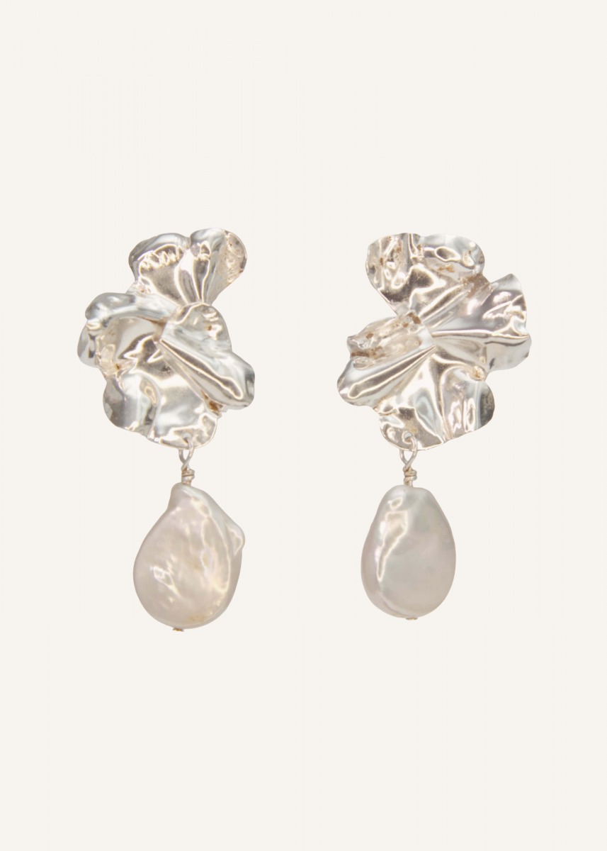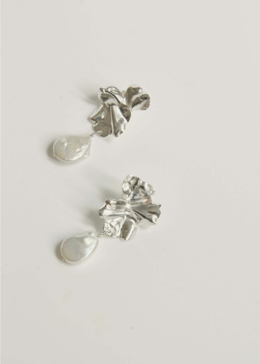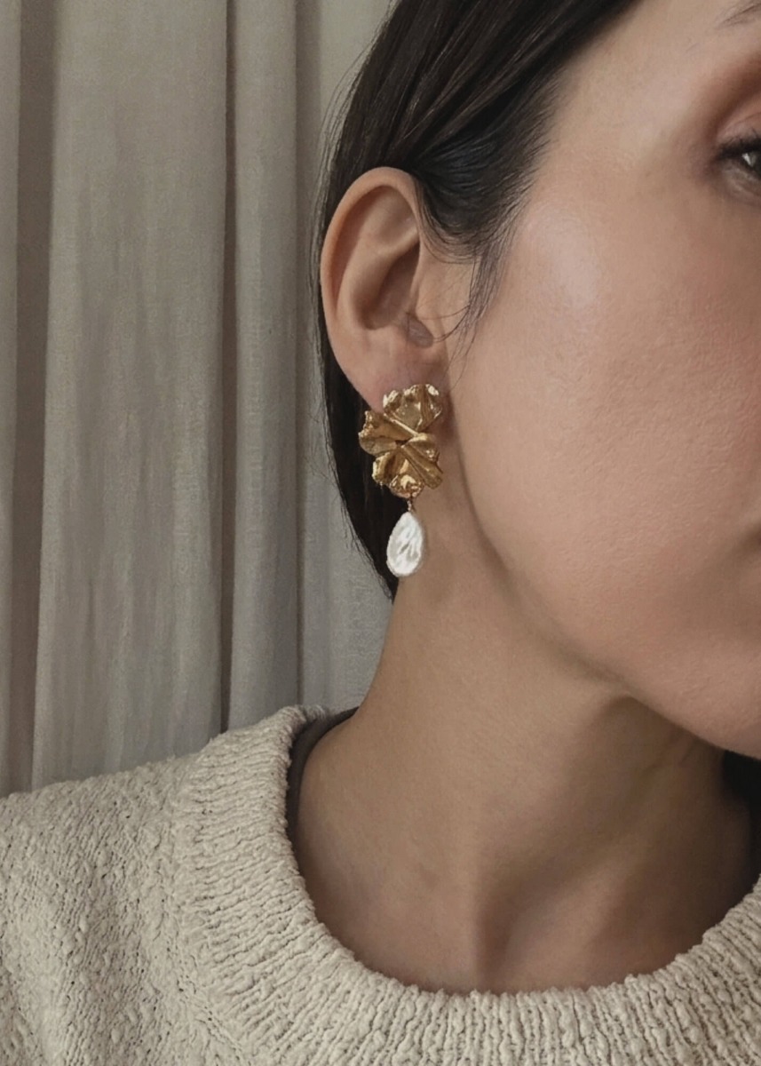 Kolczyki Monet to hołd dla malarskiej wrażliwości i organicznej rzeźby. Nieregularna tafla naturalnej perły barokowej w połączeniu z surowo wykończonym metalem tworzy kompozycję pełną ruchu i światła. To biżuteria, która staje się osobistym manifestem – odważna w formie, a jednocześnie bliska naturze dzięki swojej niedoskonałości.