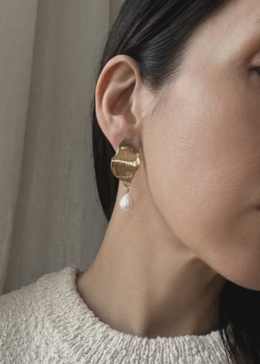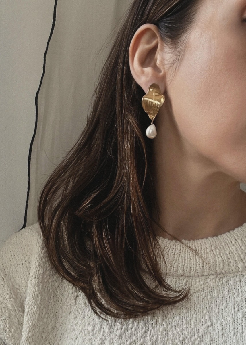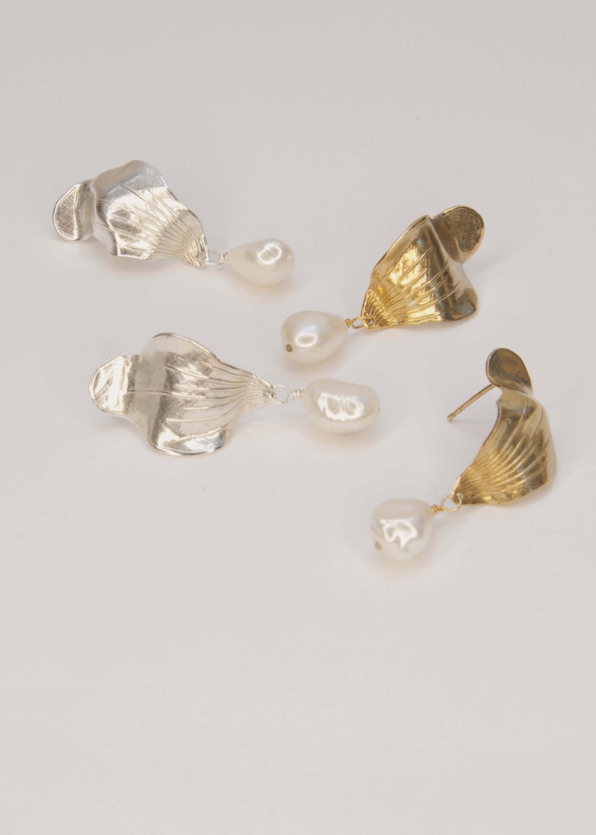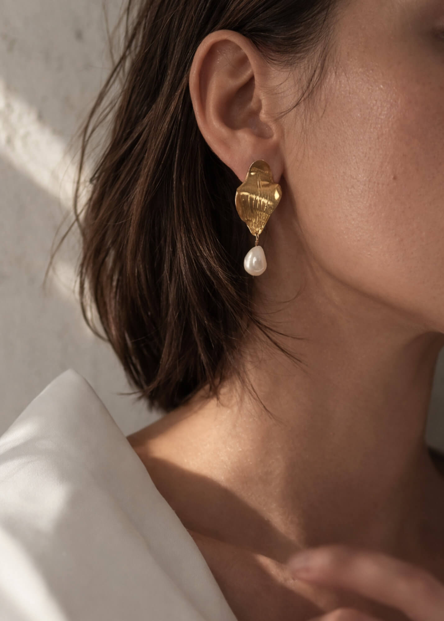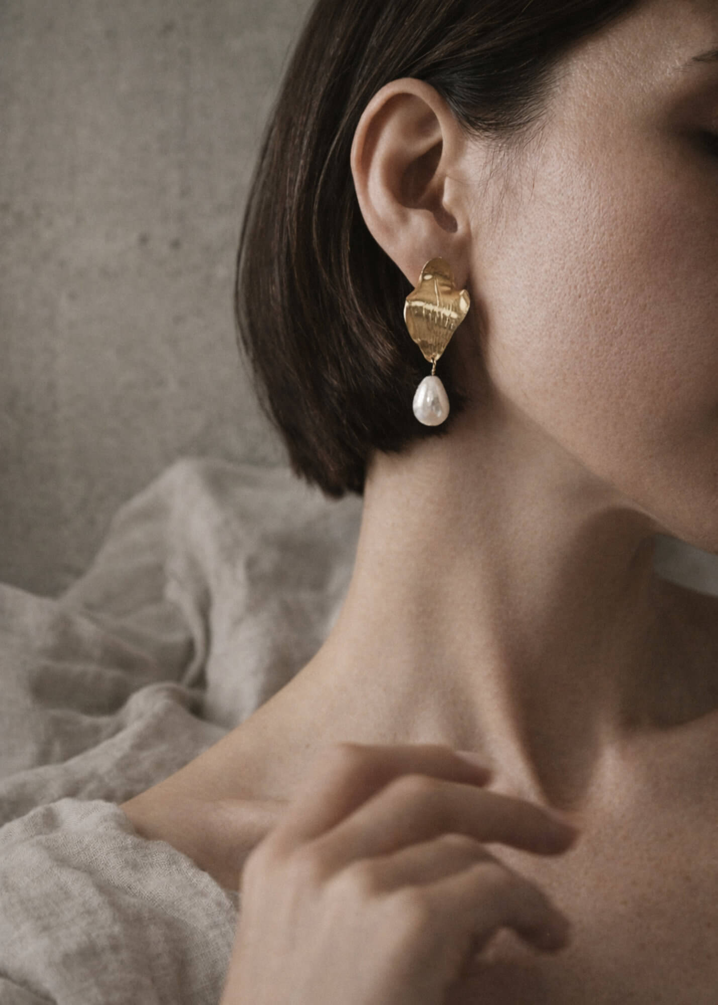 Kolczyki Primavera to florystyczna opowieść o odrodzeniu i sile natury. Metalowa forma, inspirowana organicznymi kształtami liści, otula naturalną perłę barokową, tworząc kompozycję pełną surowej elegancji. To biżuteria botaniczna w nowoczesnym wydaniu, idealna dla kobiet, które szukają dodatków z duszą i rzemieślniczym rodowodem.